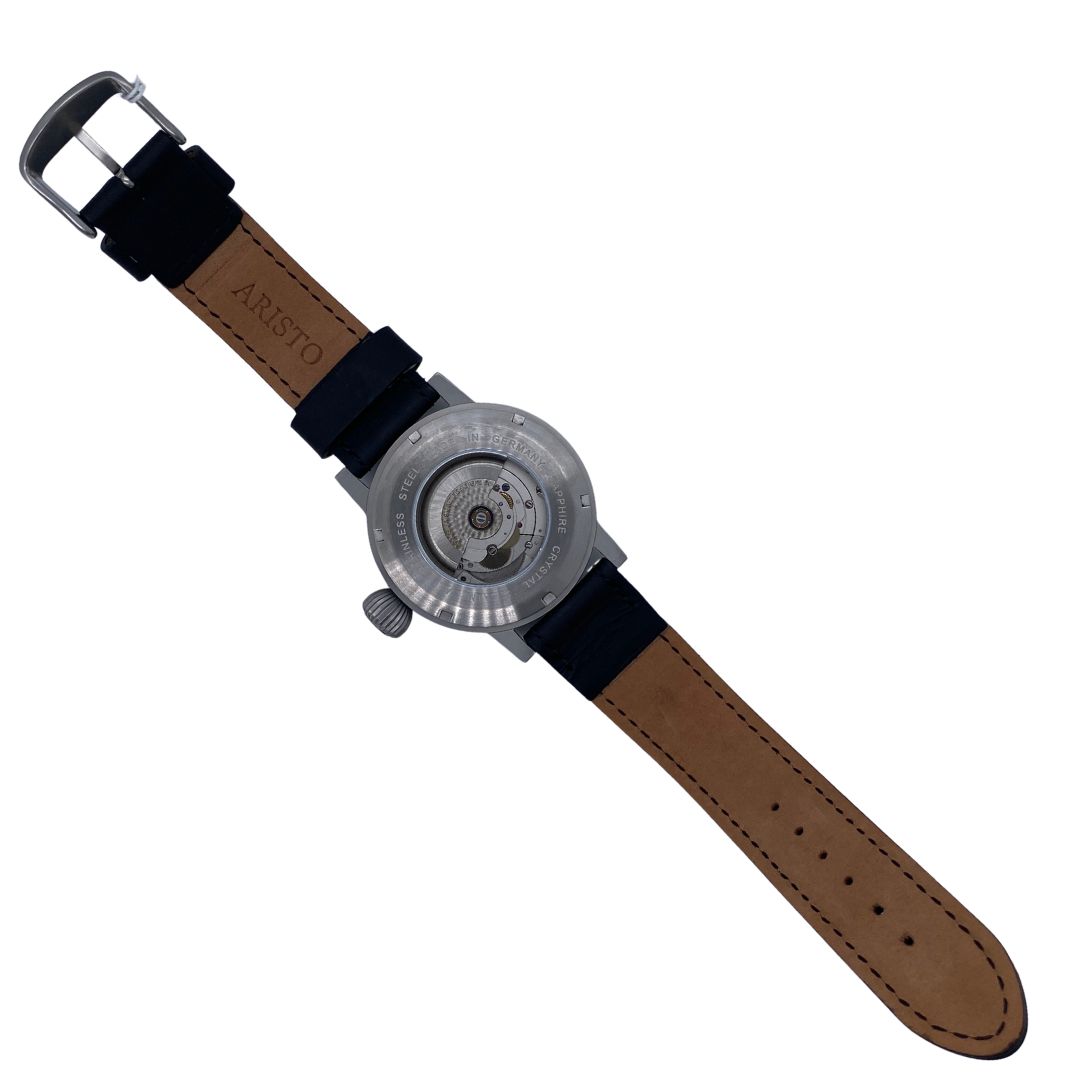 The 3H58H belongs to Aristo’s B‑Uhren XL Edition, which pays tribute to the oversized pilot watches used by navigators in the mid‑20th century. These watches were designed for precision and readability, often worn over flight jackets. The 3H58H continues this tradition while integrating modern upgrades such as sapphire glass and Swiss movements. It represents Aristo’s philosophy of combining historical aviation design cues with contemporary watchmaking standards, appealing to collectors who value authenticity and usability.