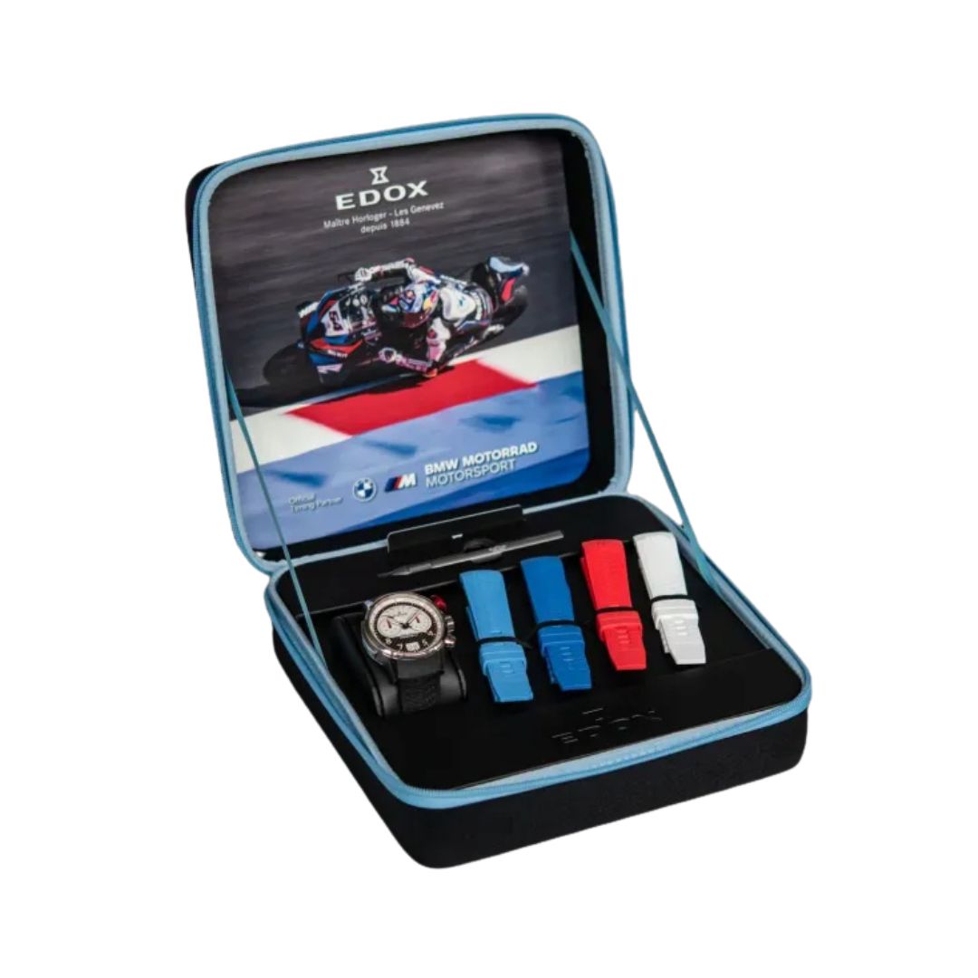 The Chronorally line was created by Edox to celebrate motorsport timing and endurance. The Chronorally 45 BMW Motorrad Motorsport Limited Edition continues this tradition, paying tribute to Edox’s partnership with BMW Motorrad and the ROKiT Superbike team. It honors the achievements of riders such as Toprak Razgatlioğlu, a recent World Champion, and embodies the high‑speed world of superbike racing. The limited edition design integrates BMW’s racing identity into the watch, making it a sought‑after piece for both motorsport fans and horology enthusiasts.