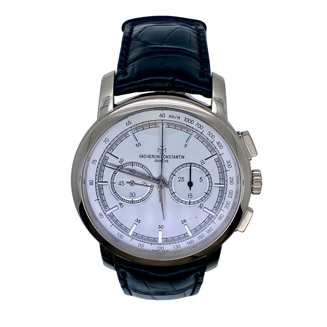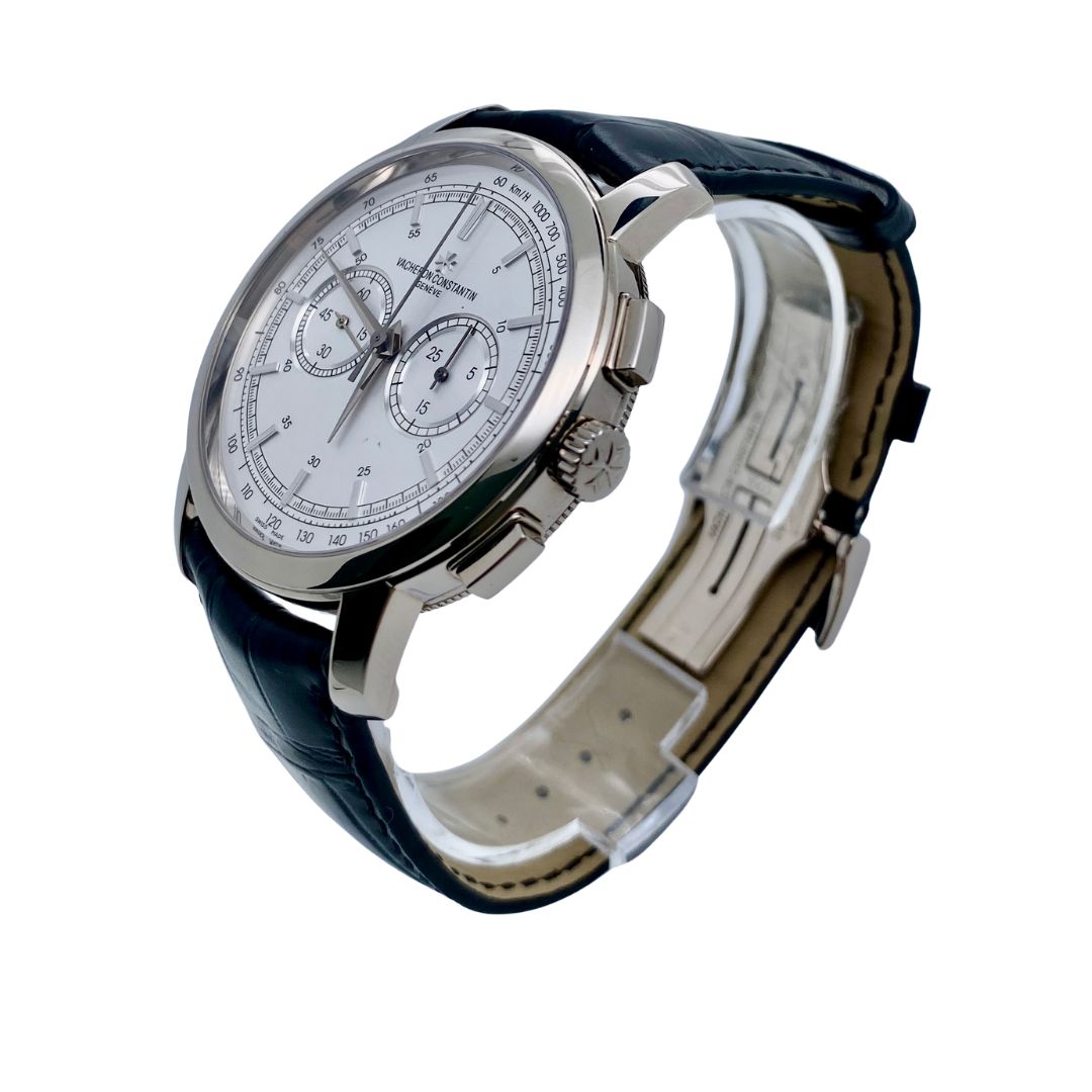 The Vacheron Constantin Traditionnelle Chronograph is a masterpiece of Geneva watchmaking, combining refined aesthetics with technical precision. Its elegant round case, stepped bezel, and dauphine hands reflect the Maison’s classical design codes, while the hand‑wound chronograph movement delivers both functionality and artistry. With meticulous finishing and harmonious proportions, this timepiece embodies timeless sophistication for discerning collectors.
