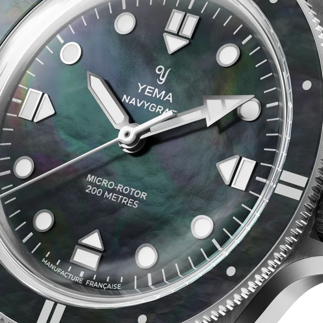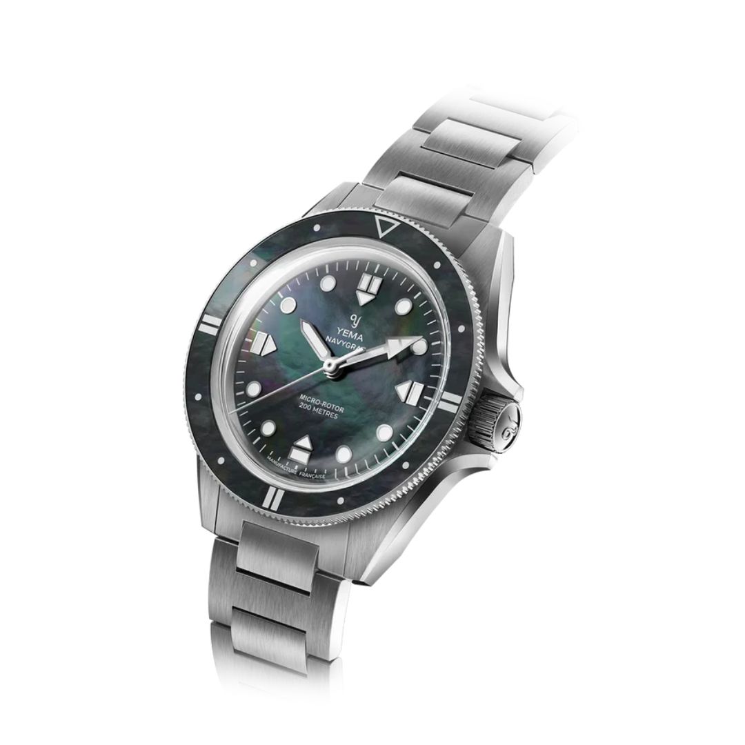 The Navygraf line originated in the 1970s as a robust dive watch designed for professionals and military use. Over the decades, it became a symbol of YEMA’s partnership with the French Navy (Marine Nationale), culminating in the official Navygraf Marine Nationale in 2021. The Pearl CMM.20 edition, launched in 2025, reinterprets this heritage with a slimmer case (just 9.75mm thick) and luxurious mother-of-pearl elements, while retaining the Navygraf’s hallmark durability and 200m water resistance. It represents a modern evolution of a historic tool watch, balancing utility with elegance.